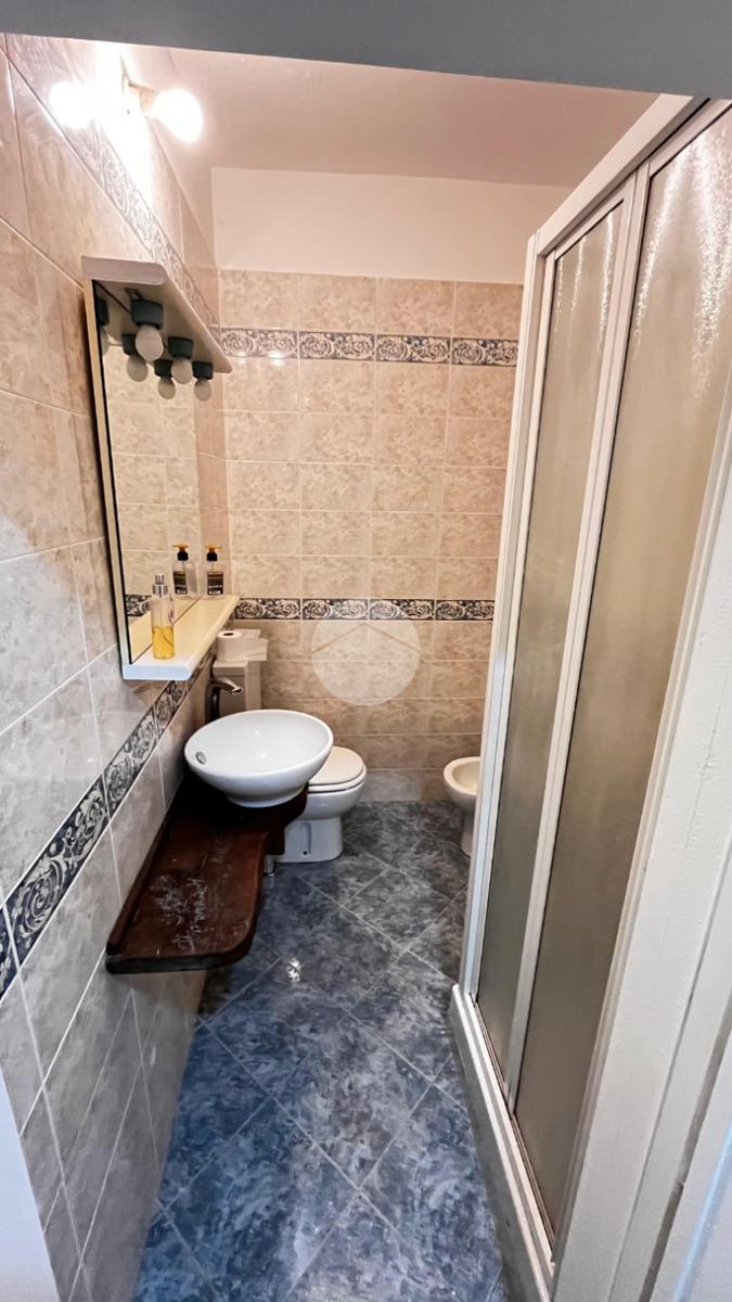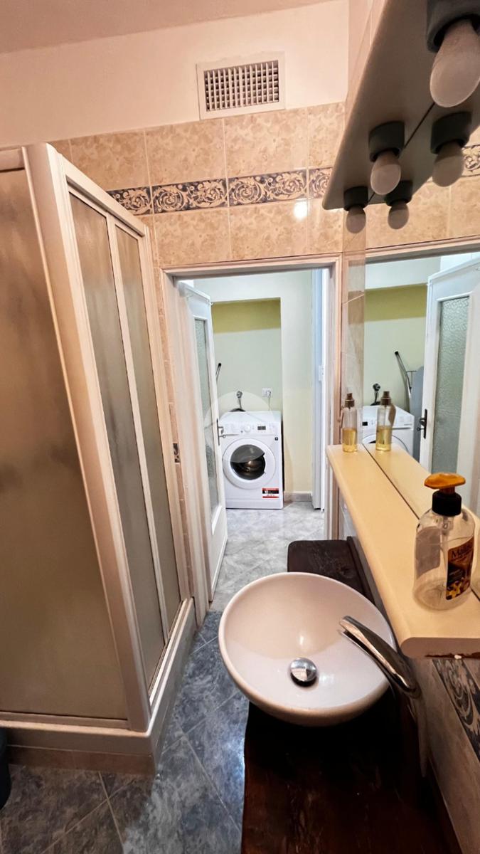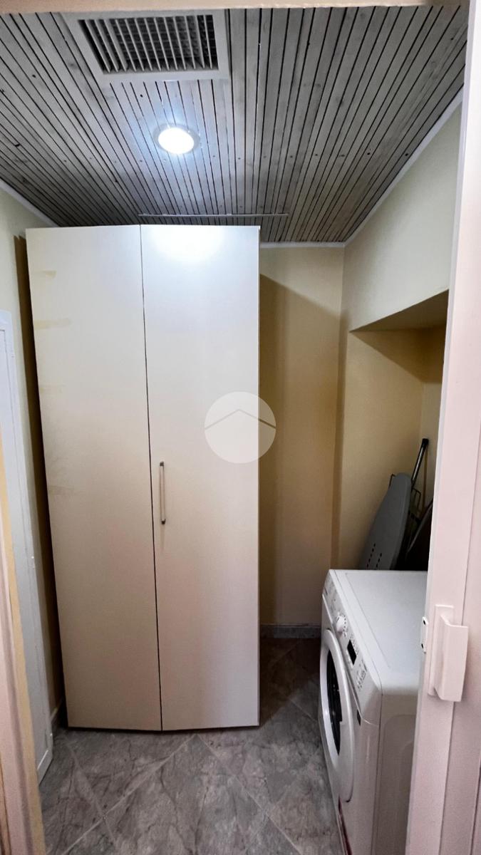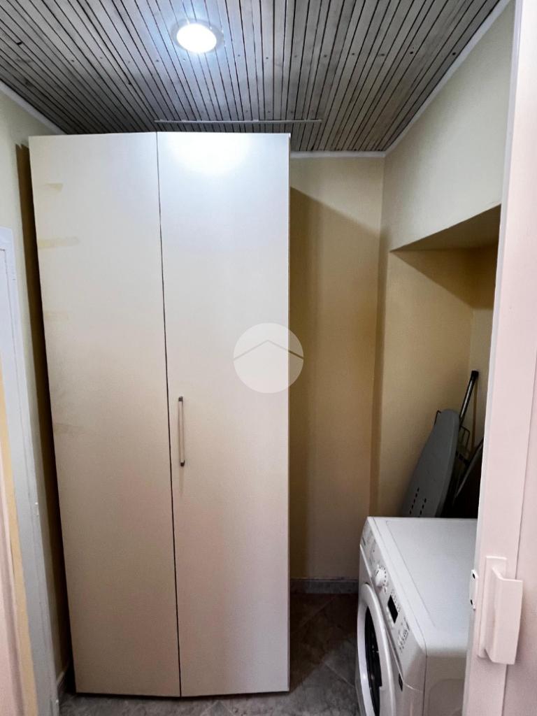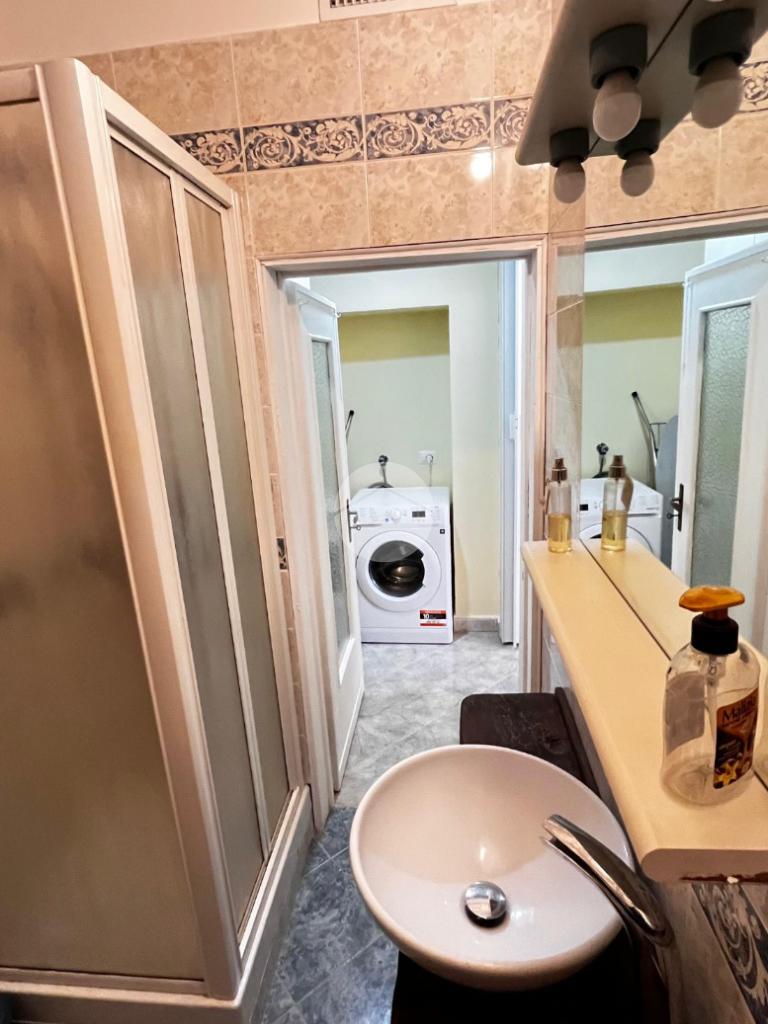 Il disimpegno che conduce al bagno, finestrato con doccia, è adibito a lavanderia dove è già presente la lavatrice. In dotazione con l’immobile anche il ferro e l’asse da stiro.