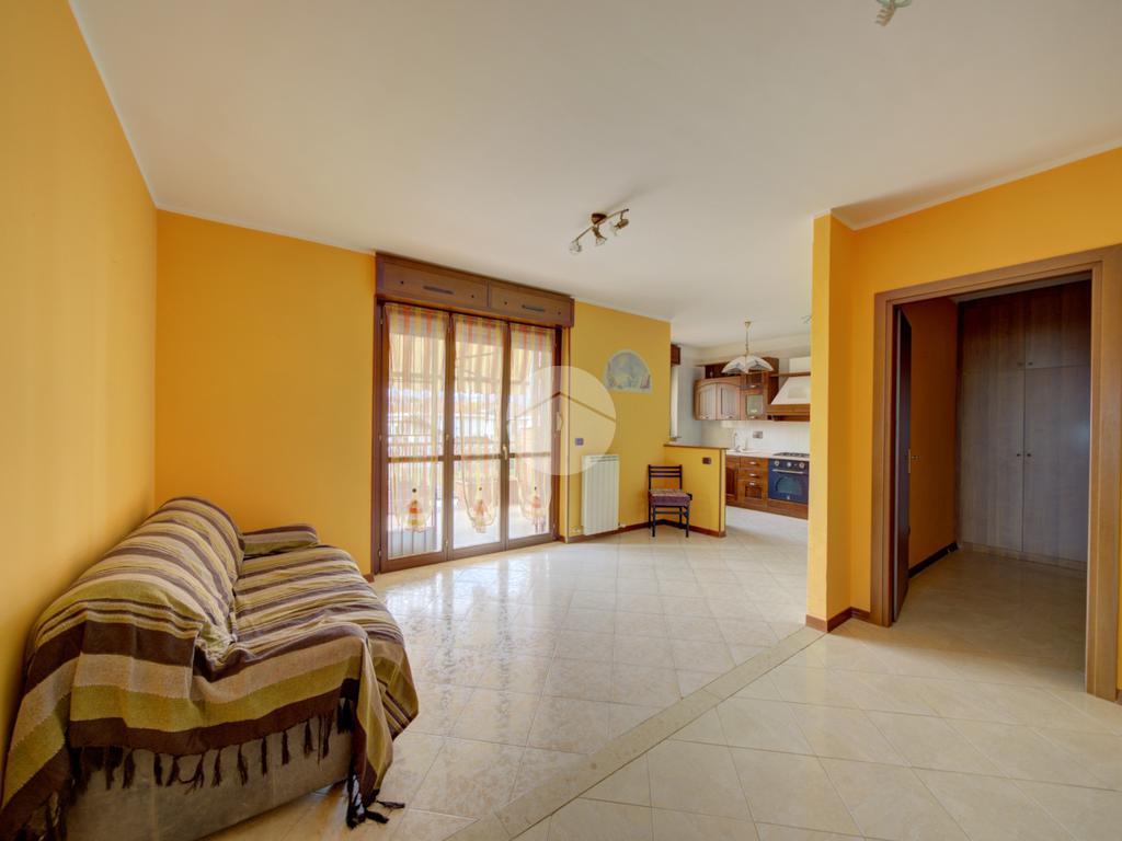 Ubicato al primo piano e comodamente raggiungibile tramite ascensore, questo appartamento è composto da un ingresso che conduce all'ampio soggiorno con cucina a vista.