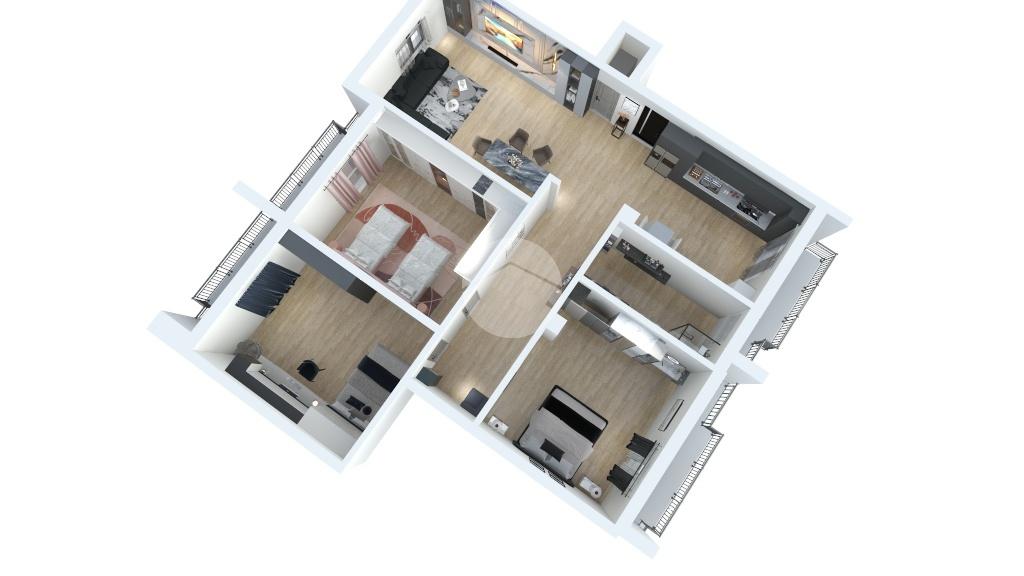 L’appartamento è composto da un ingresso in corridoio, attorno al quale si sviluppano i vari locali suddivisi in: luminoso soggiorno, cucina abitabile, tre camere da letto spaziose, ripostiglio e un bagno.