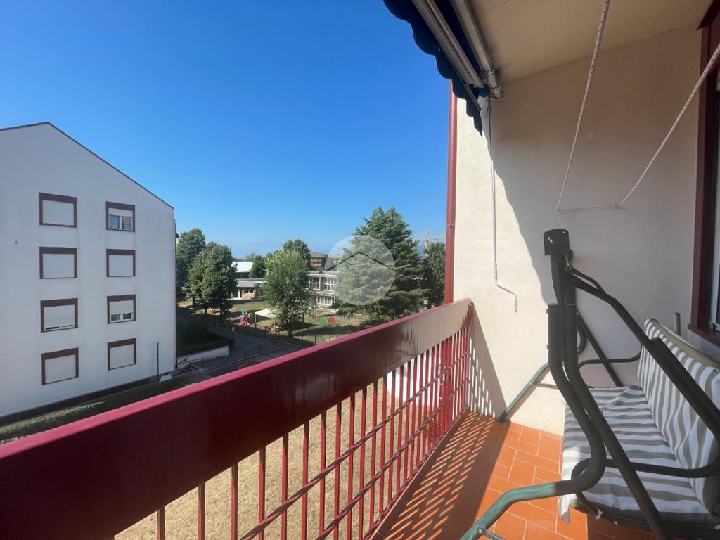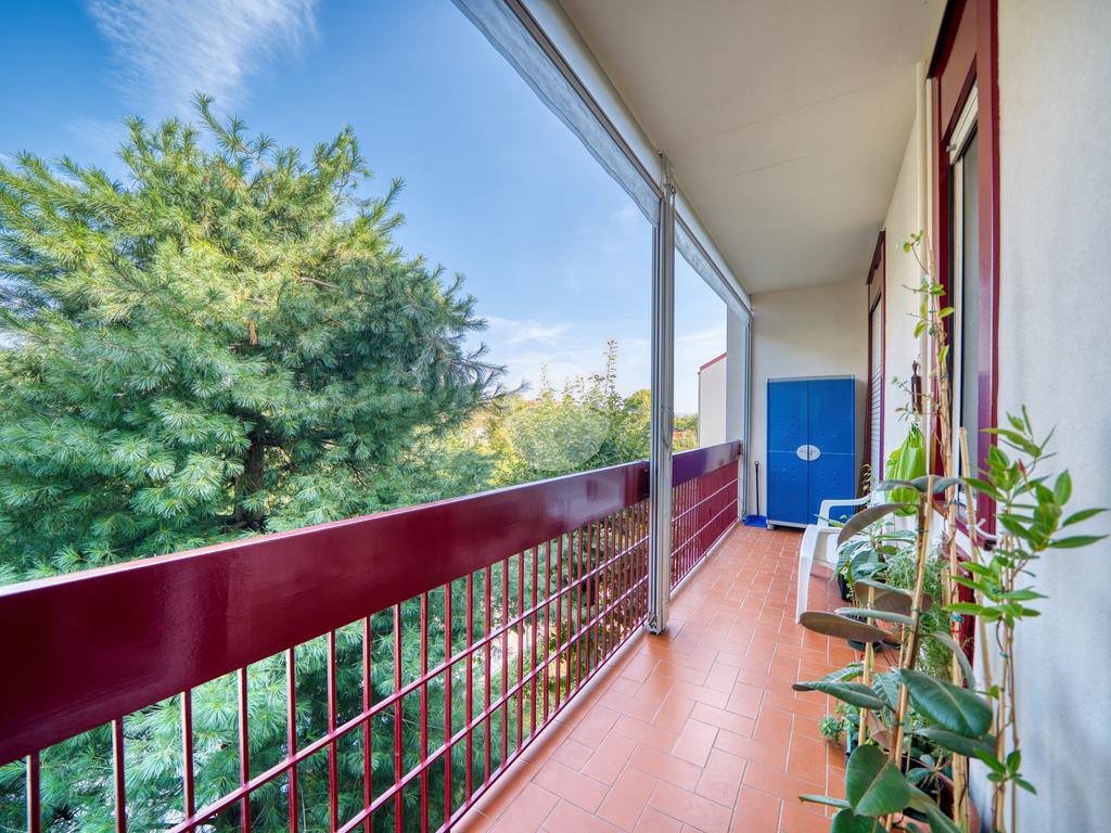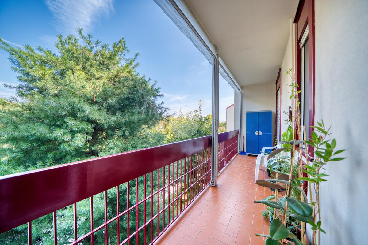 Tramite porta-finestra presente in salone si accede al primo balcone, condiviso con la cameretta, e dotato di tenda estiva che rende lo spazio fruibile anche nelle giornate più soleggiate. Un secondo balcone che regala una suggestiva vista su San Giorgio, è invece accessibile dalla camera matrimoniale e dalla cucina.