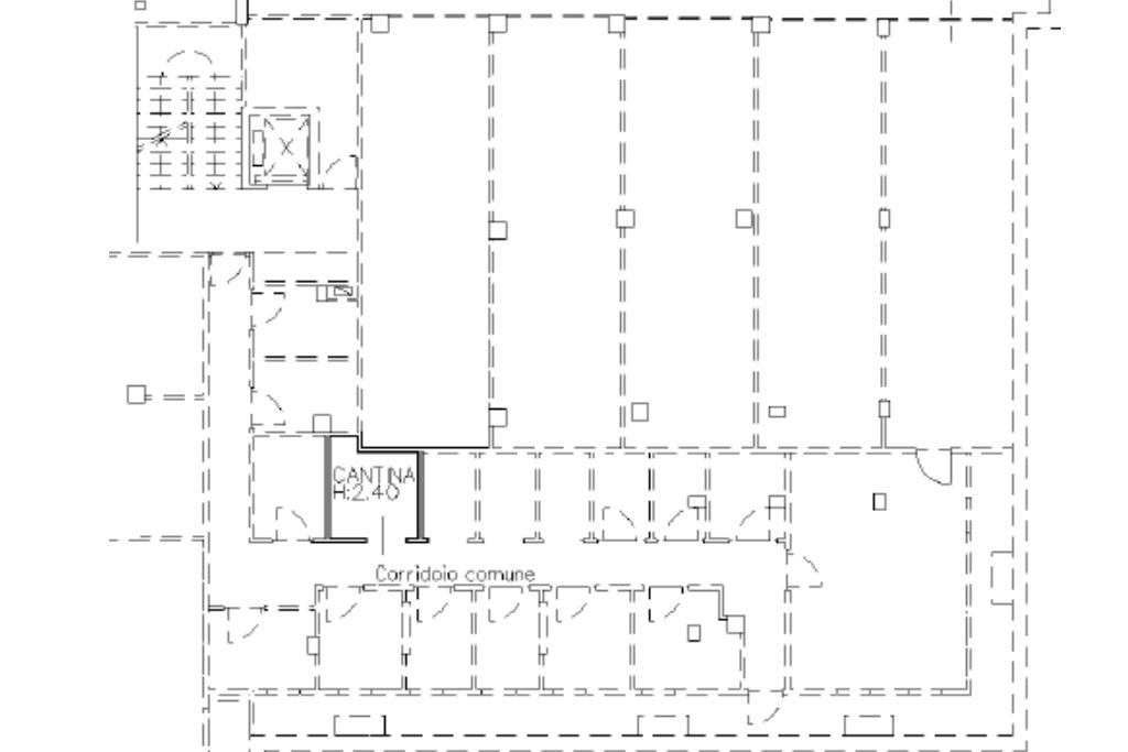 Cantina e box auto privati. L’altezza dell’autorimessa consente di sfruttare parte dello spazio come soppalco.