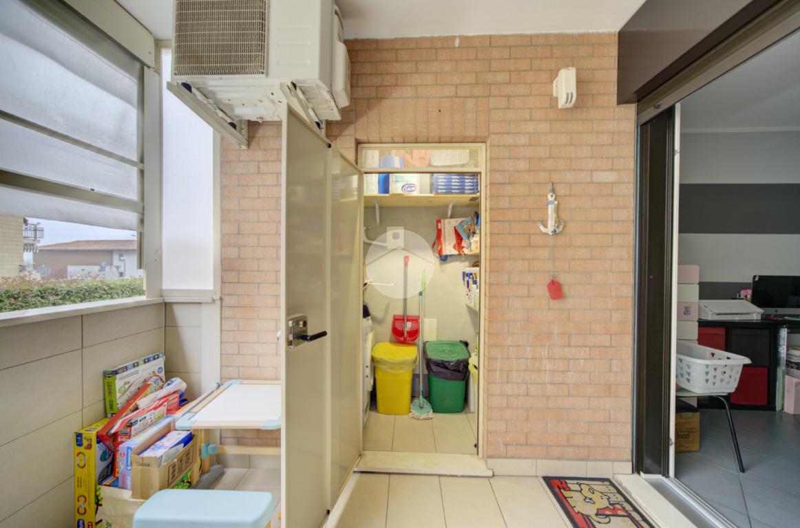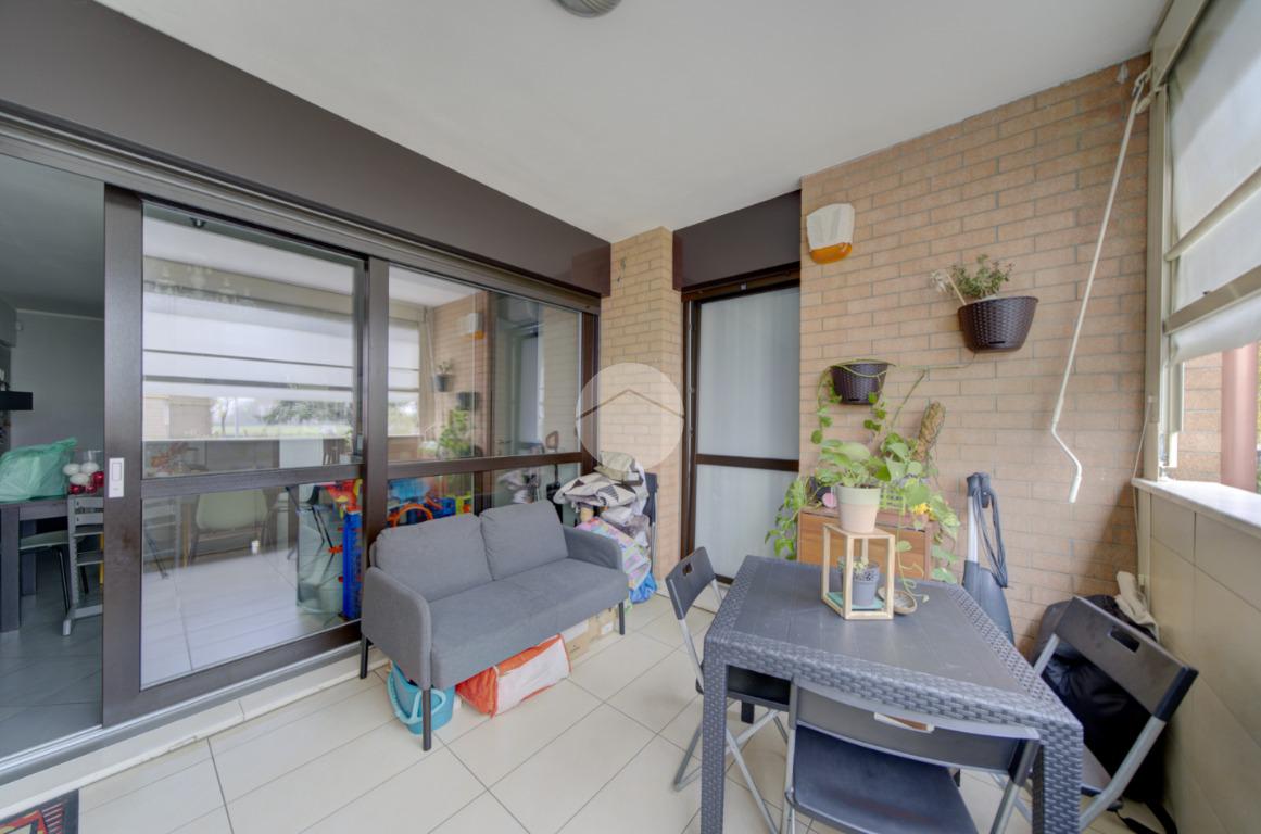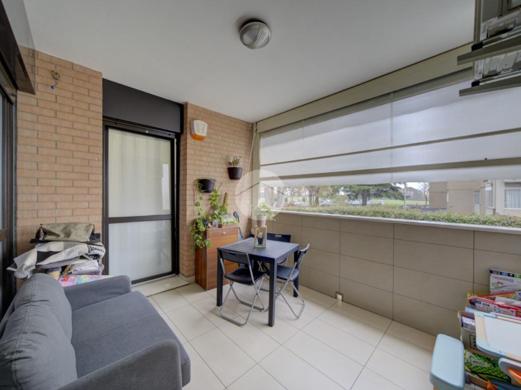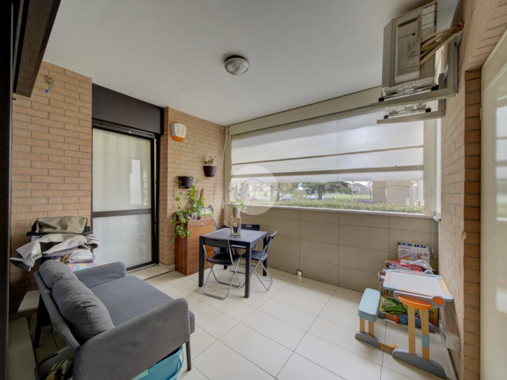 A valorizzare la soluzione, ampio terrazzo con affaccio sul verde. Il terrazzo consente di mangiare comodamente all’esterno; è, inoltre, provvisto di tende da sole invernali e zanzariere, che ne consentono l’utilizzo in tutte le stagioni, di locale caldaia e di attacco dell’acqua esterno per eventuale lavanderia.