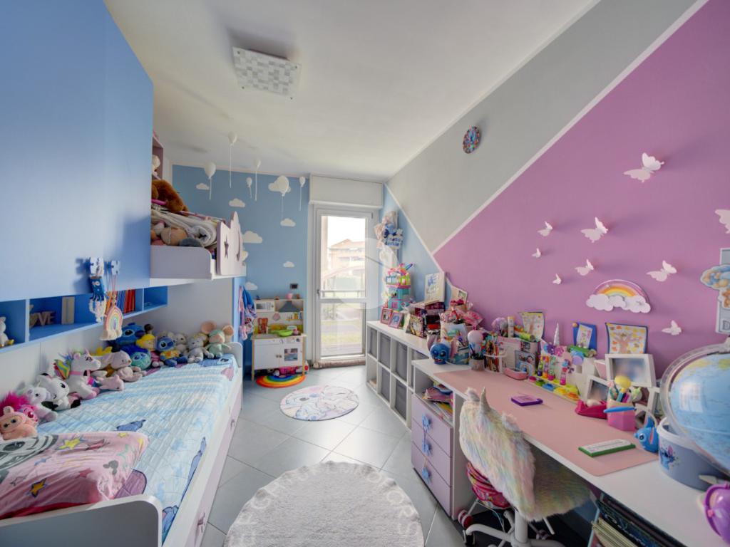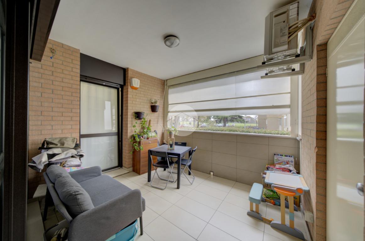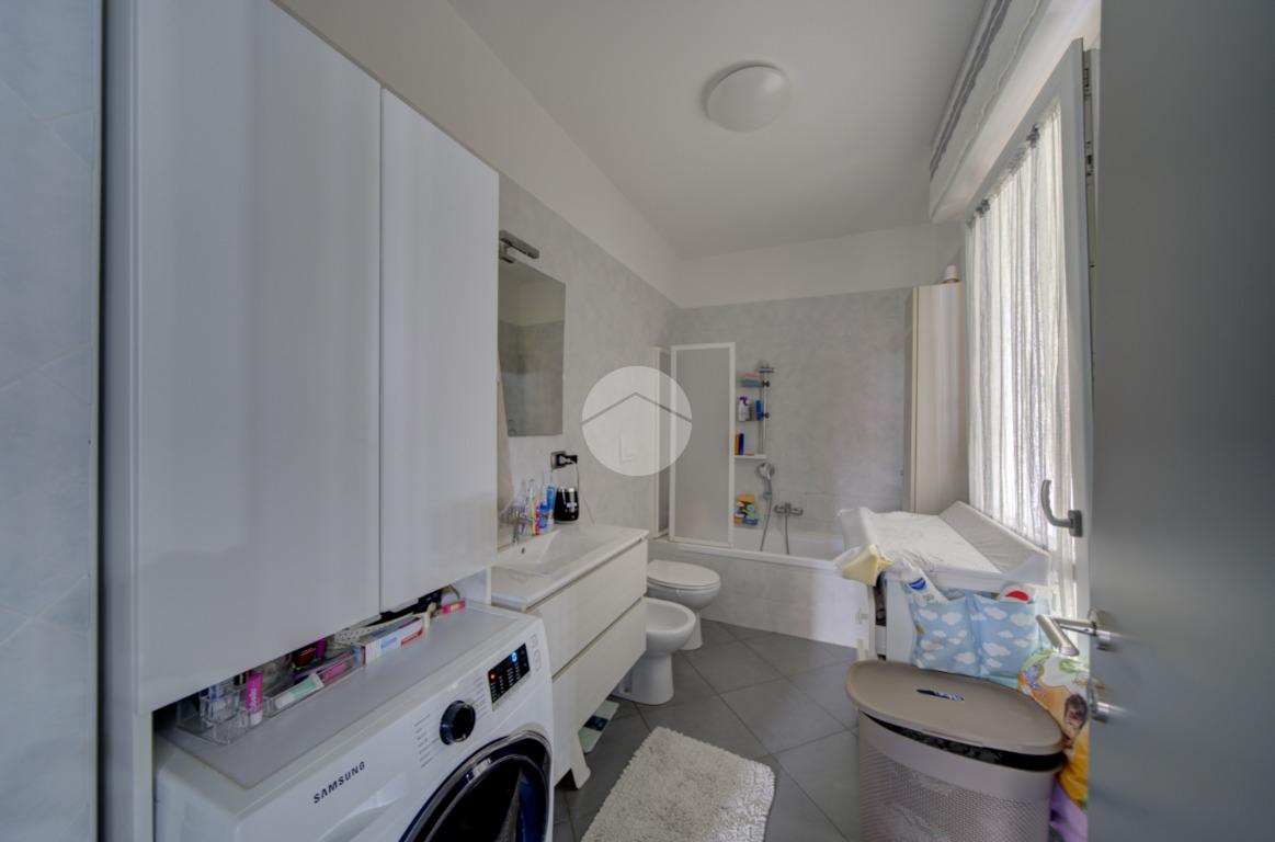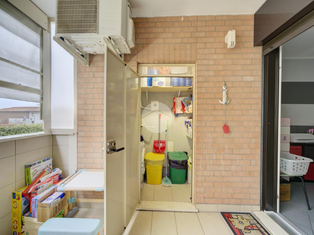 A valorizzare la soluzione, ampio terrazzo con affaccio sul verde. Il terrazzo consente di mangiare comodamente all’esterno; è, inoltre, provvisto di tende da sole invernali e zanzariere, che ne consentono l’utilizzo in tutte le stagioni, di locale caldaia e di attacco dell’acqua esterno per eventuale lavanderia.