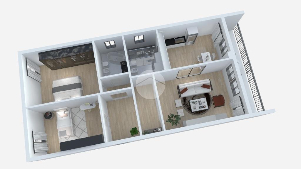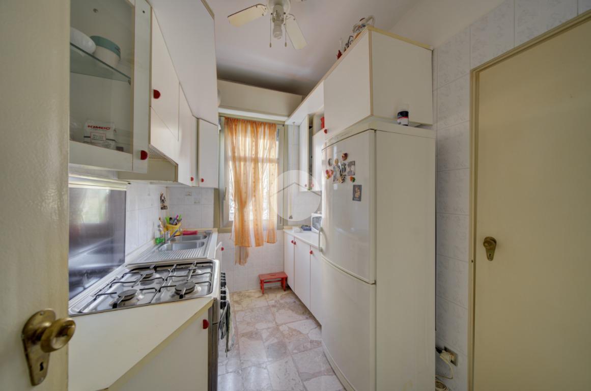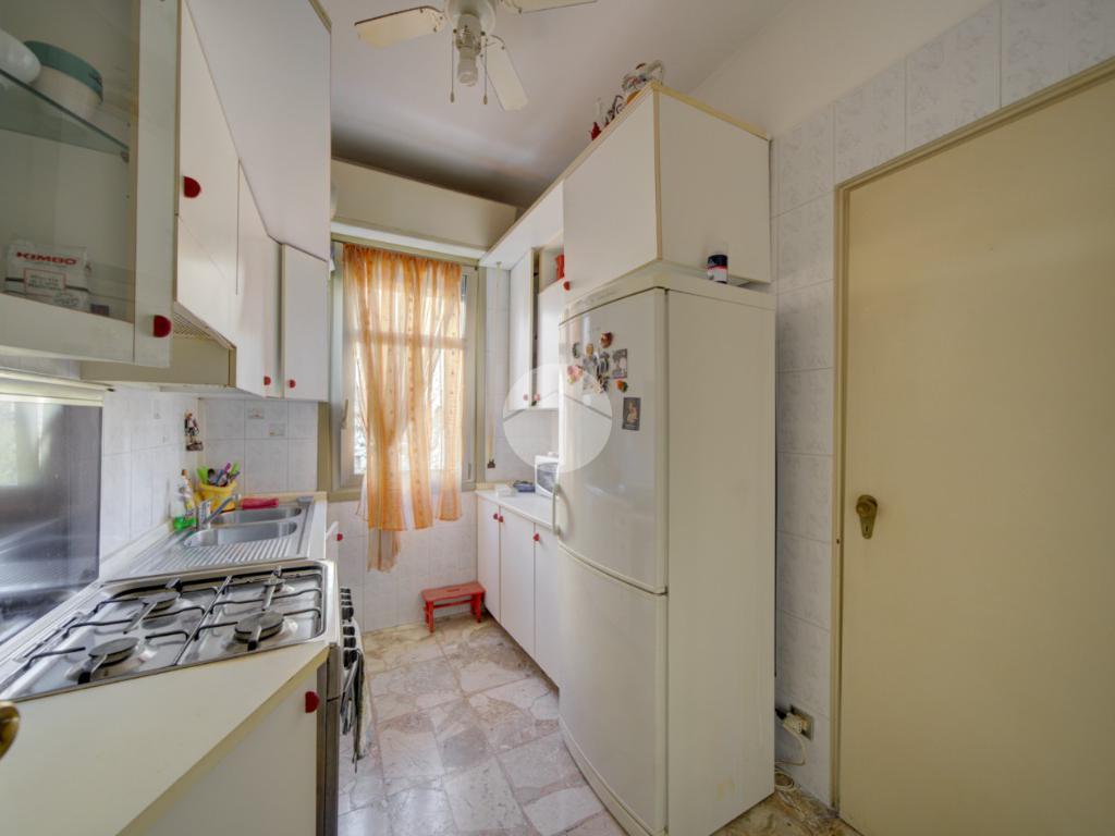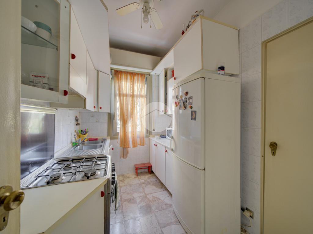 L’appartamento è composto da un ingresso su corridoio, una cucina finestrata con doppio accesso, sia dal corridoio sia dalla sala da pranzo. La zona giorno comprende la sala da pranzo e il salotto, entrambi molto luminosi e con uscita sul balcone.