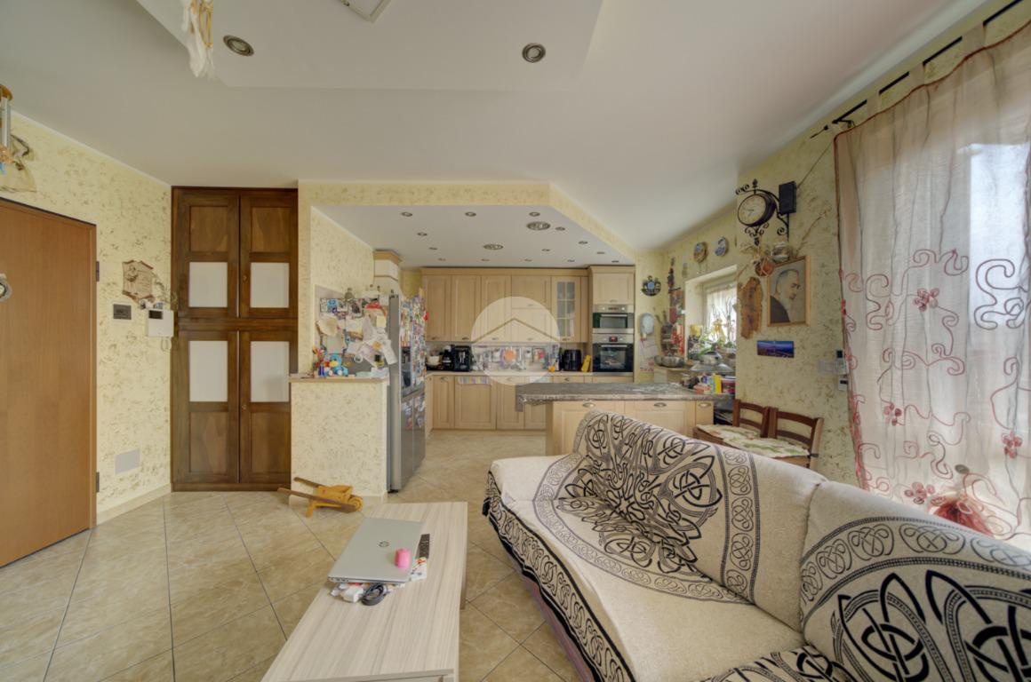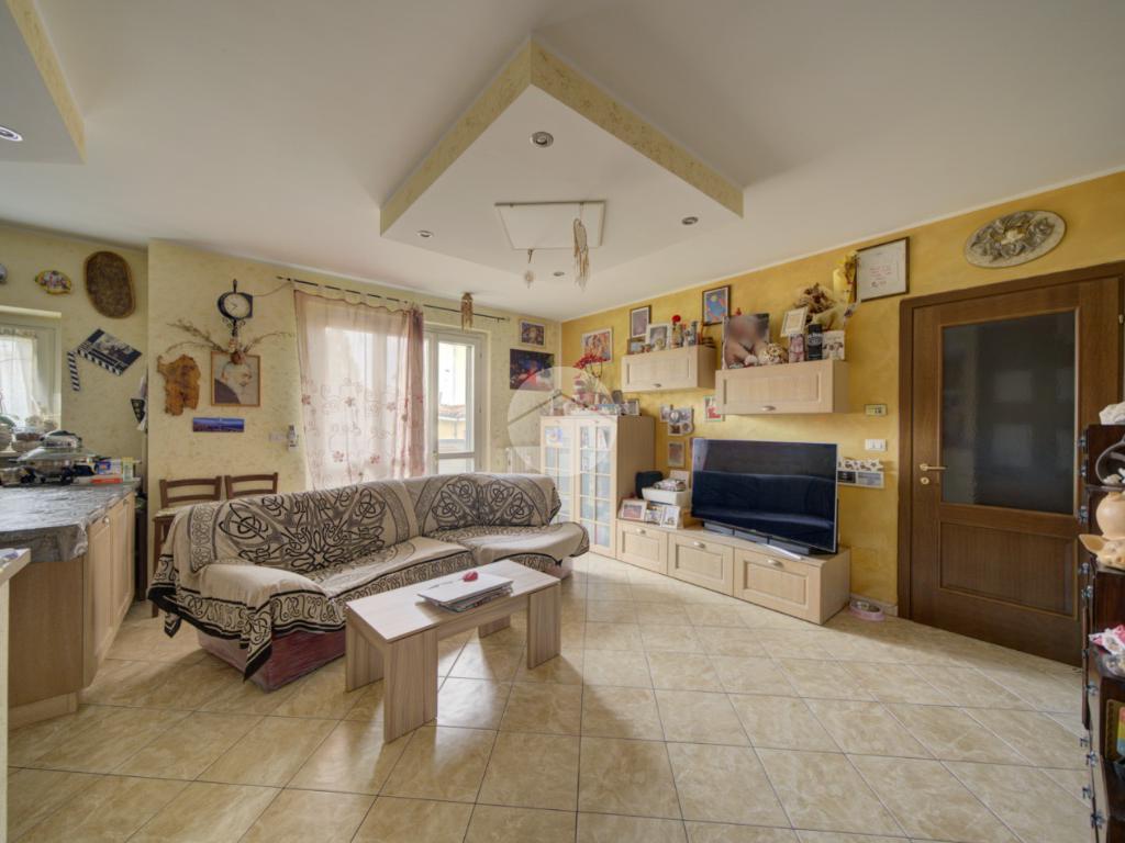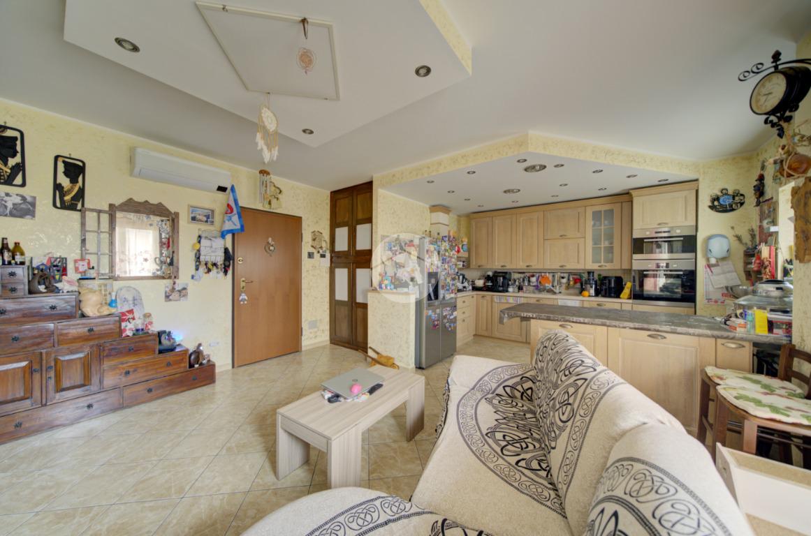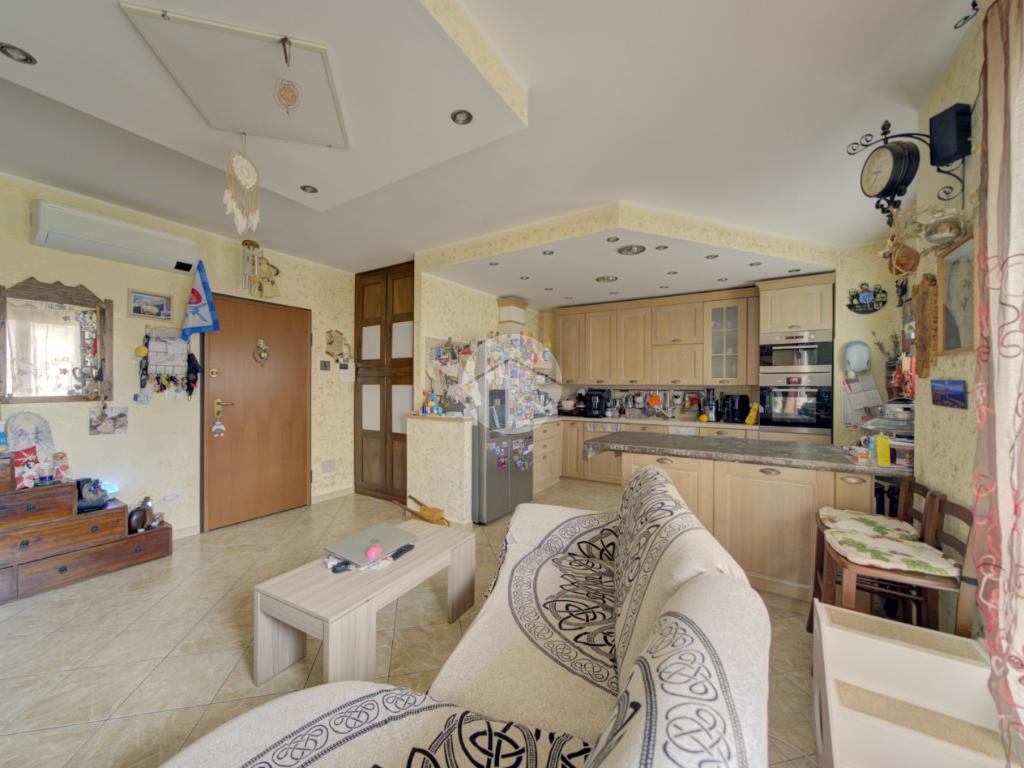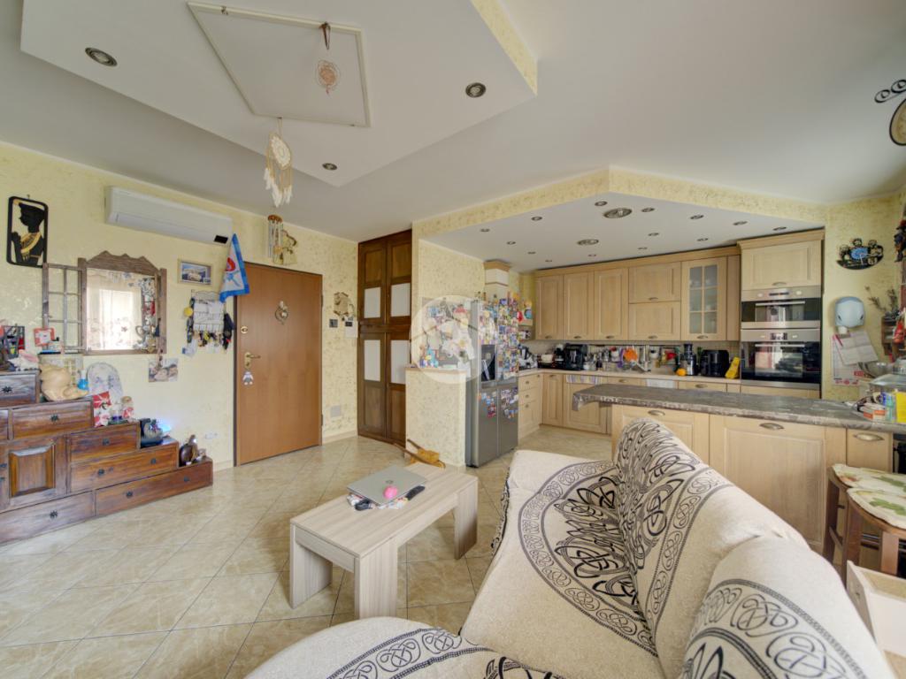 L’ingresso conduce a una ampia zona giorno living luminosa con cucina a vista e accesso diretto al balcone. L’ambiente è dotato di impianto di climatizzazione con pompa di calore, in grado di garantire comfort durante tutto l’anno.