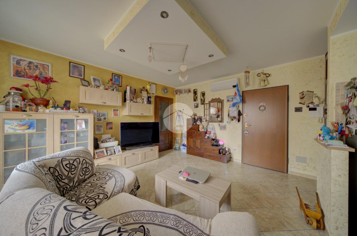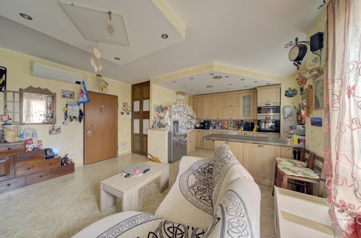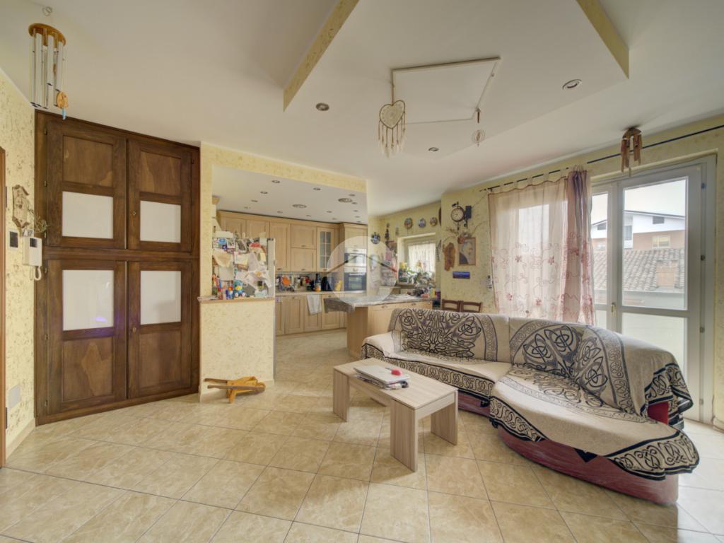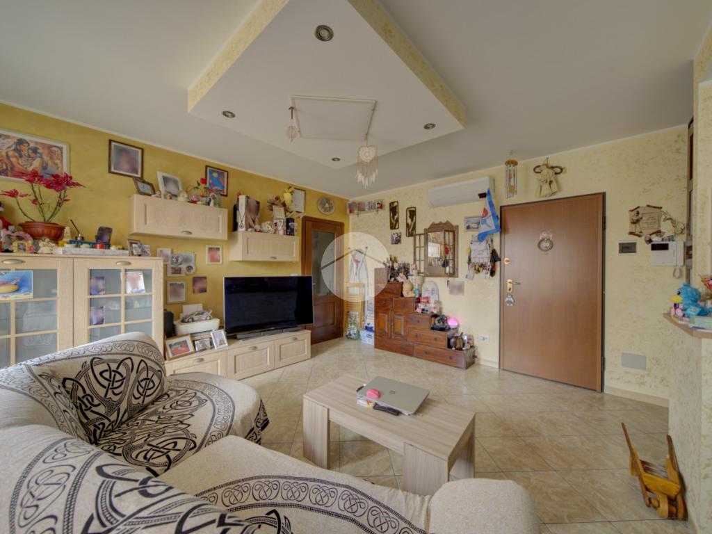 L’ingresso conduce a una ampia zona giorno living luminosa con cucina a vista e accesso diretto al balcone. L’ambiente è dotato di impianto di climatizzazione con pompa di calore, in grado di garantire comfort durante tutto l’anno.