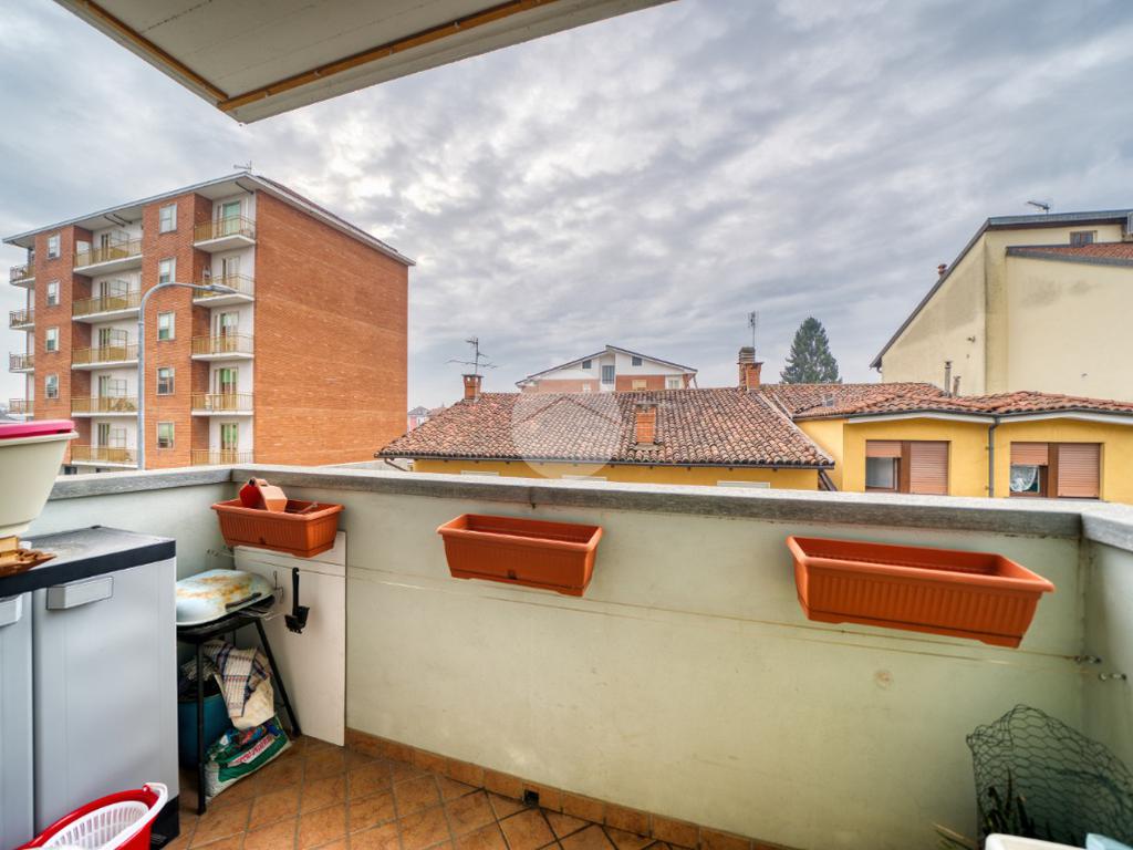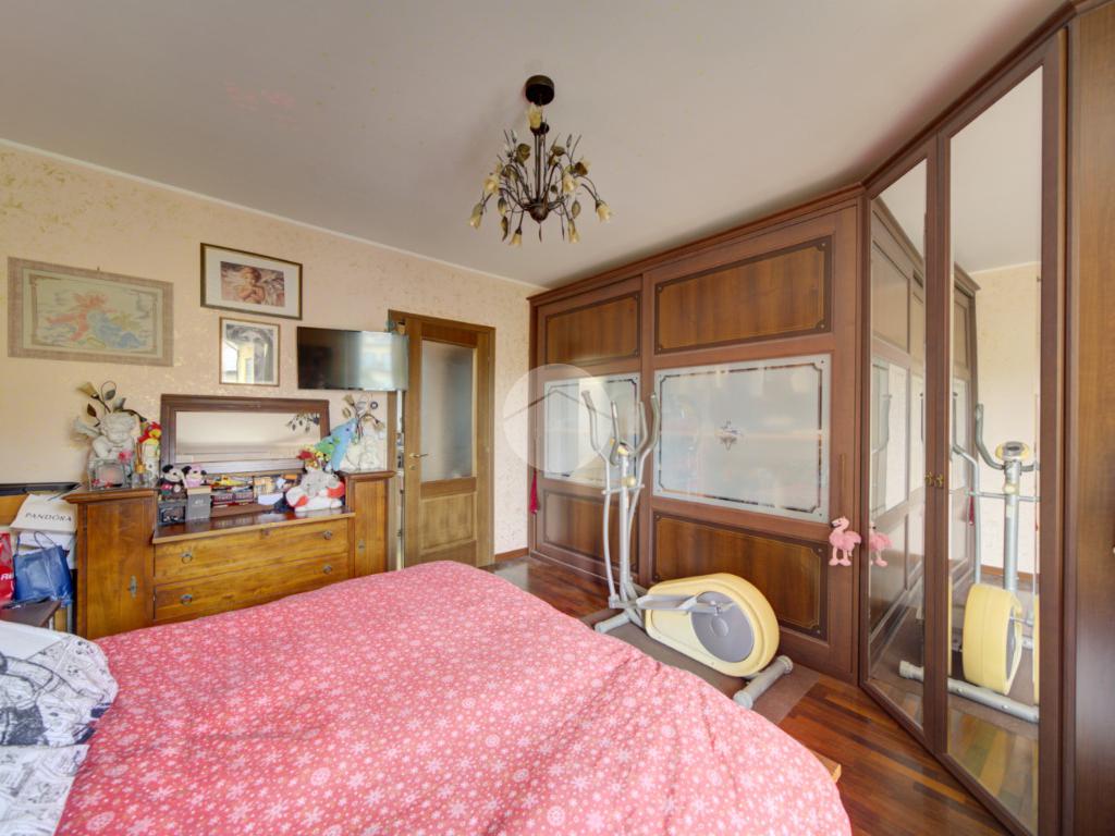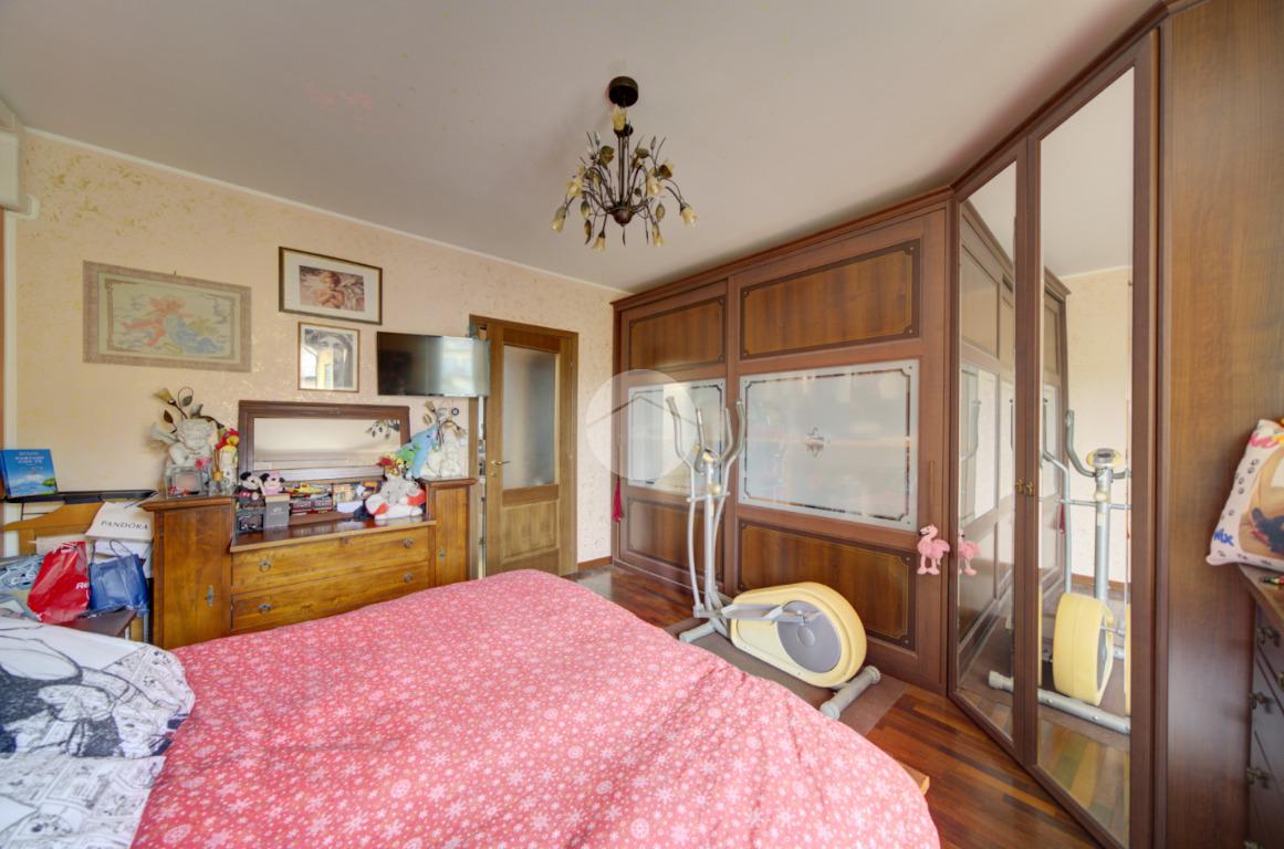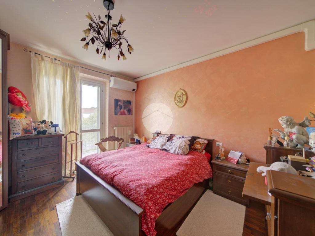 Un pratico disimpegno conduce alla zona notte, composta da un ripostiglio, dal bagno finestrato dotato di vasca e dalla camera matrimoniale, che dispone di secondo balcone e di impianto di climatizzazione.