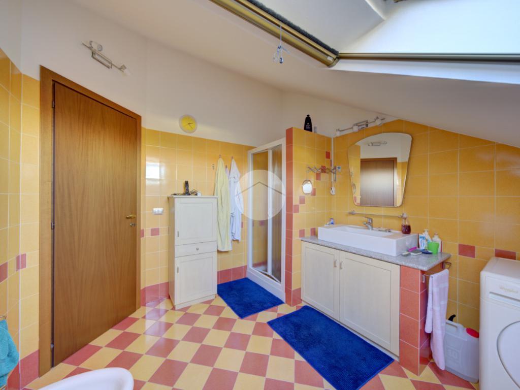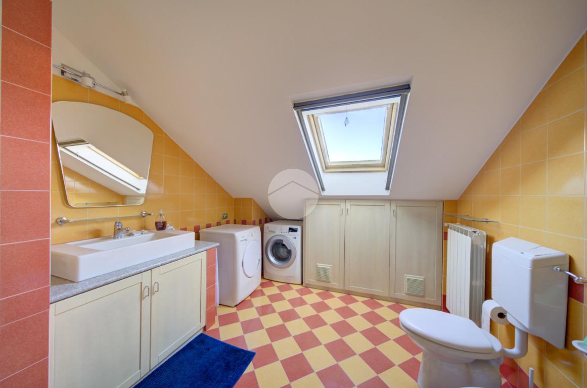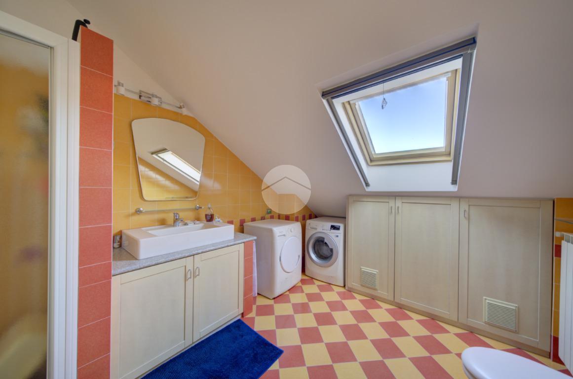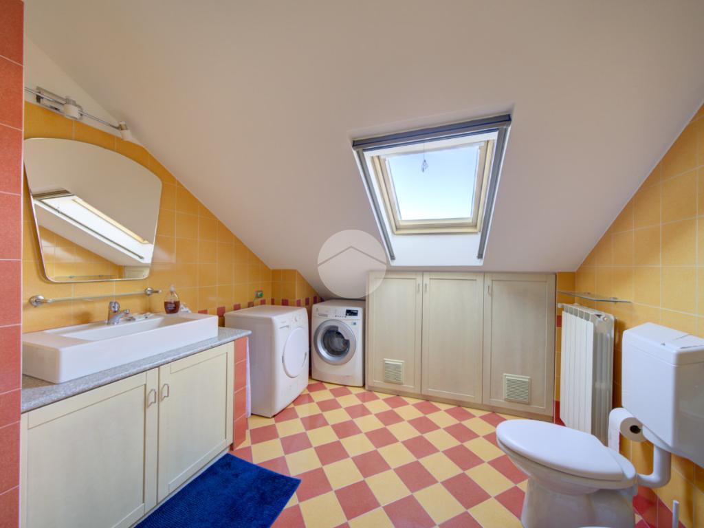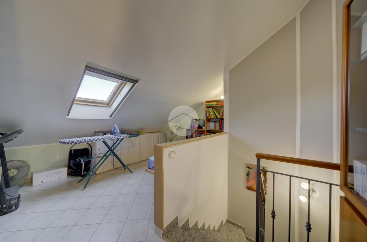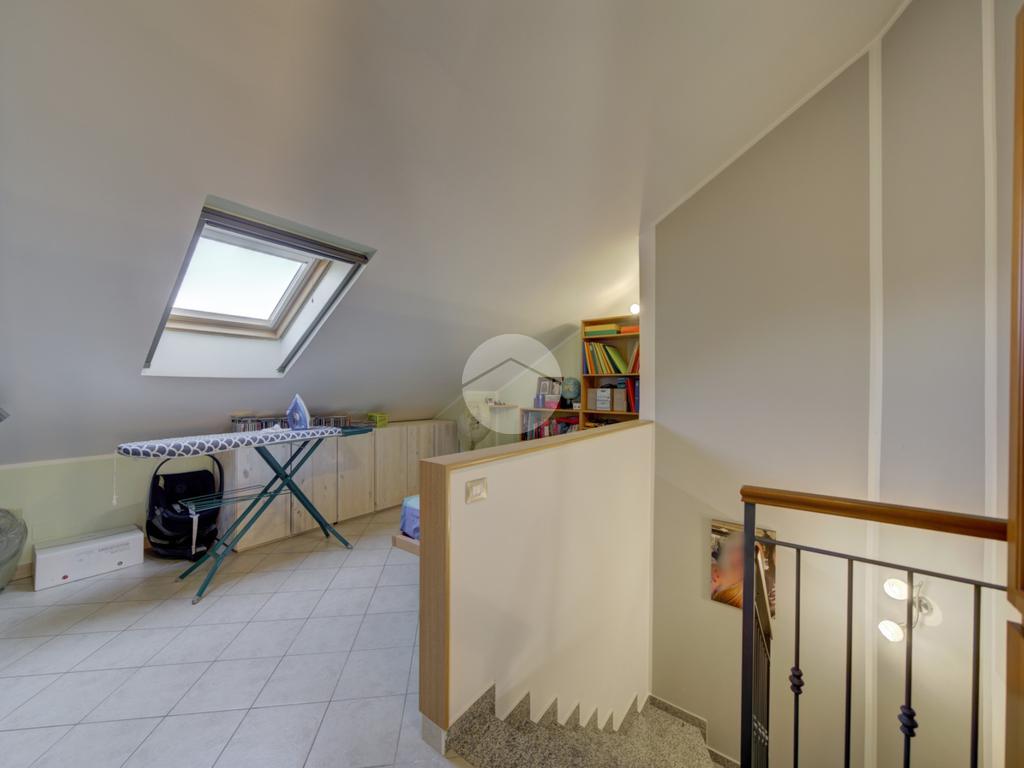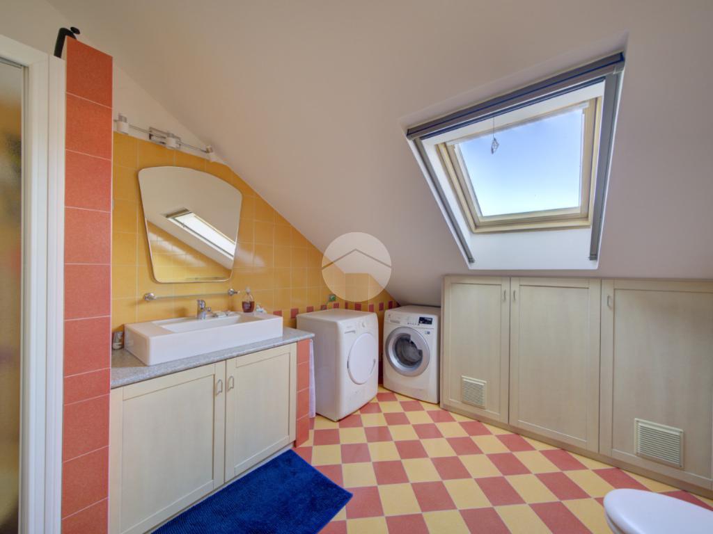 Tramite scala interna si accede al piano superiore mansardato, dove troviamo due locali, di cui uno con cabina armadio, una lavanderia e uno studio, ideale come spazio lavoro o zona relax.