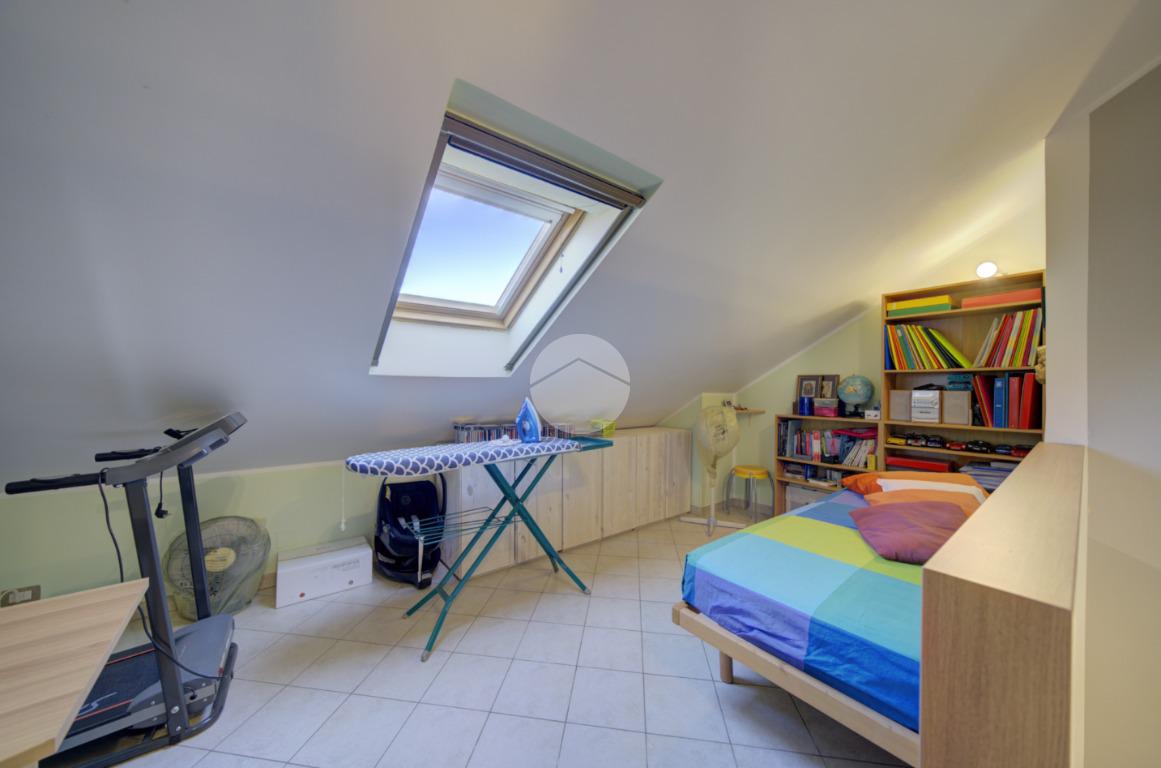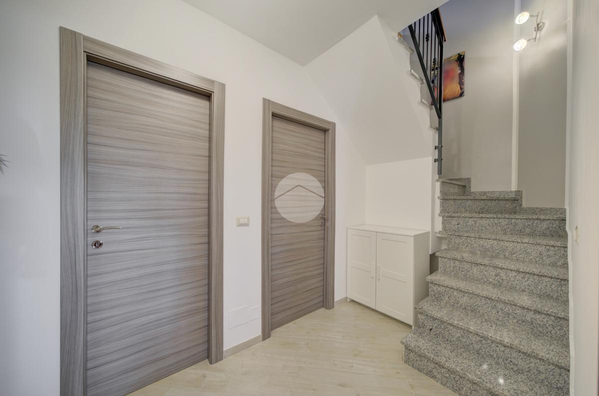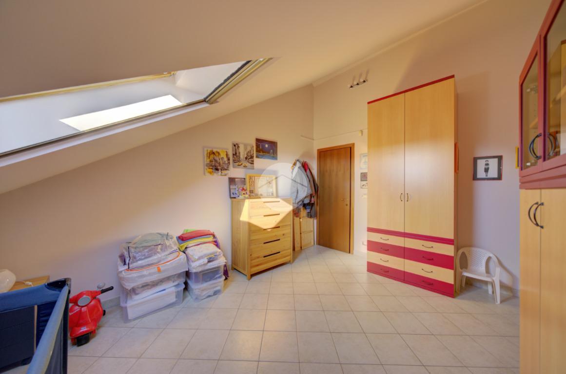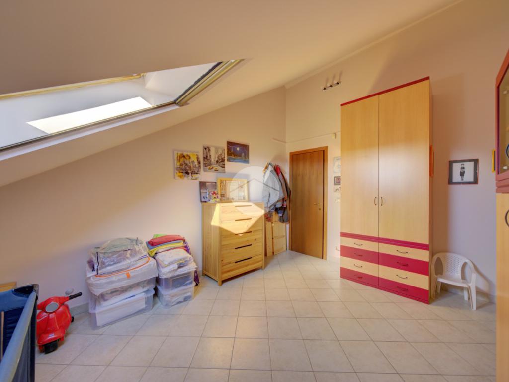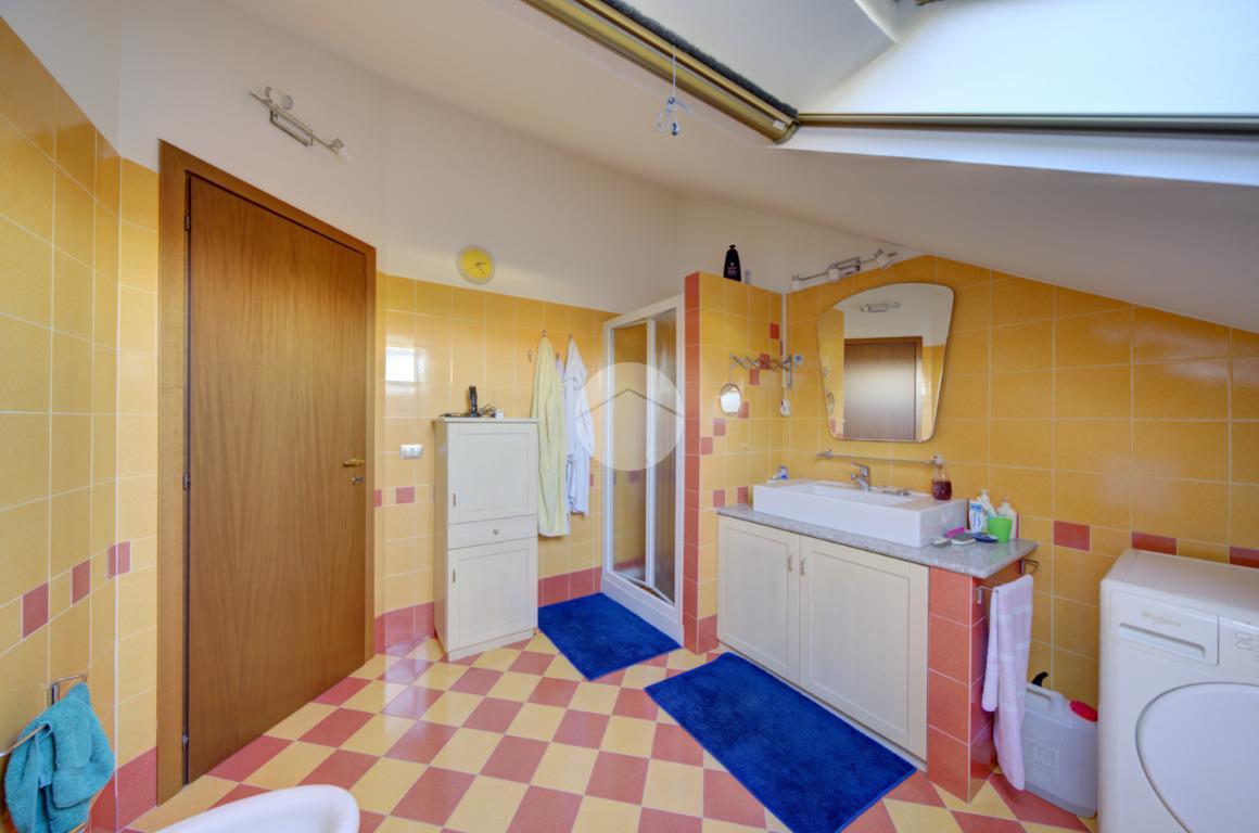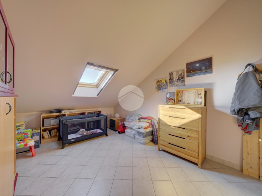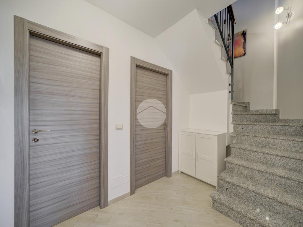 Tramite scala interna si accede al piano superiore mansardato, dove troviamo due locali, di cui uno con cabina armadio, una lavanderia e uno studio, ideale come spazio lavoro o zona relax.