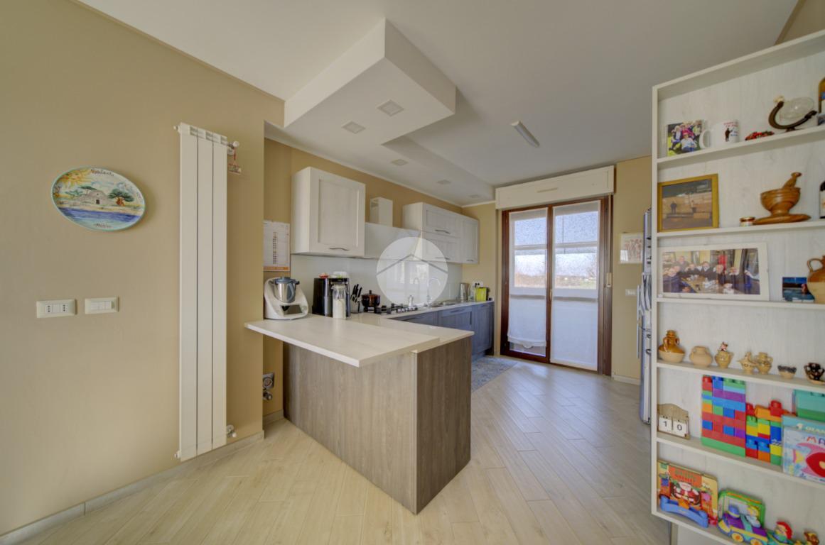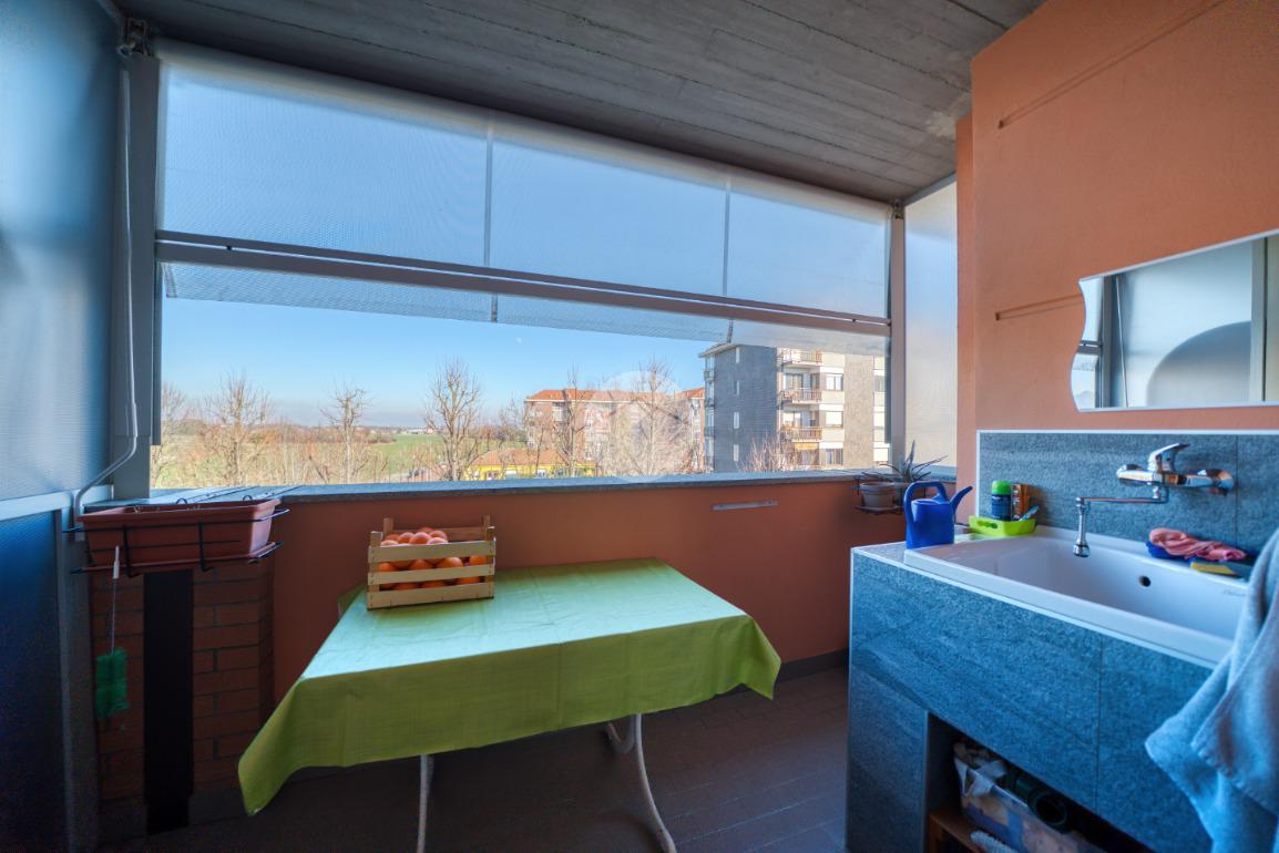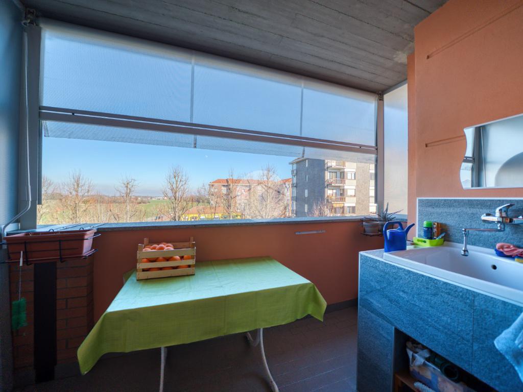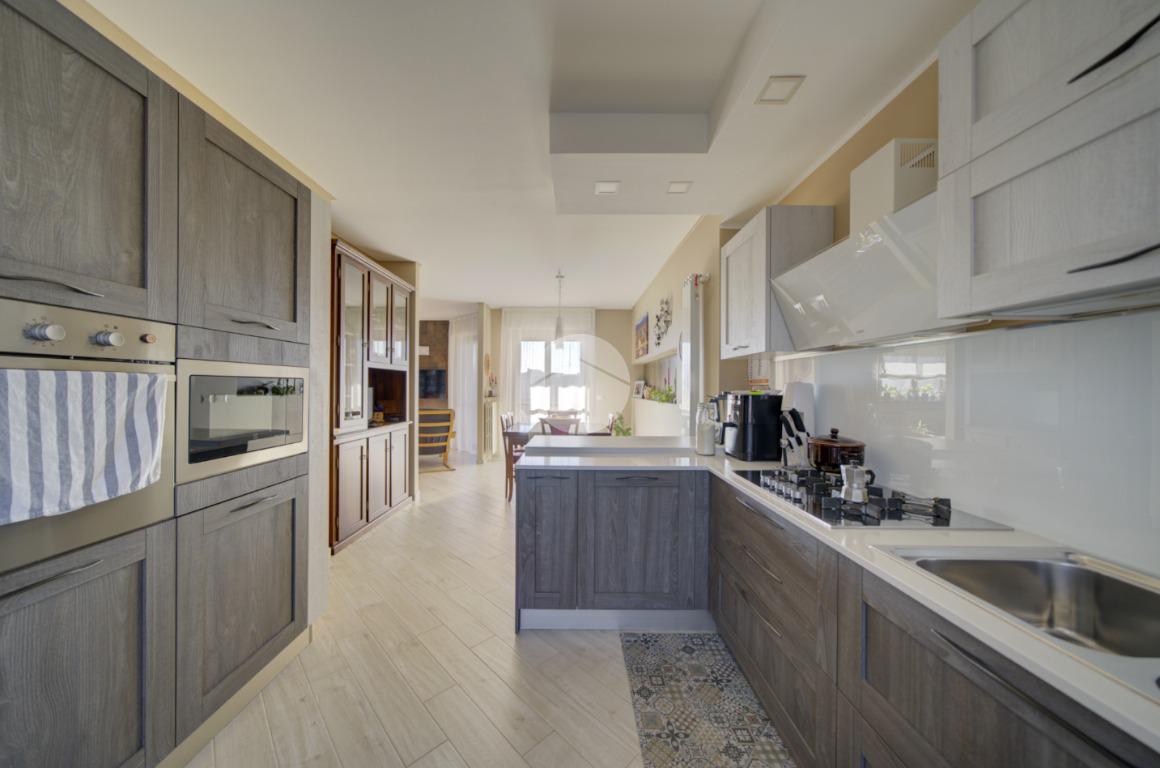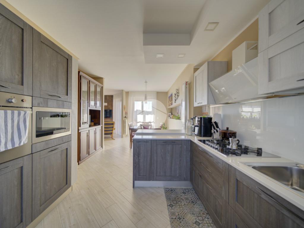 Dal soggiorno si accede alla cucina abitabile, con uscita su un secondo terrazzo dotato di angolo lavatoio. Ottima esposizione a sud-est.
