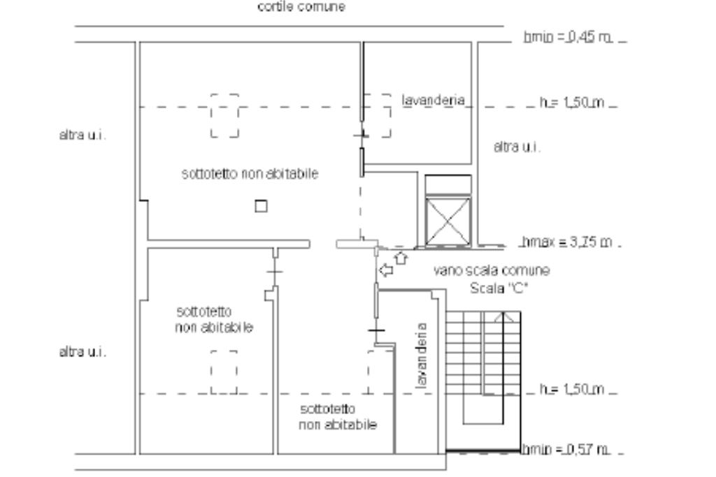 Il sottotetto, di circa 80 mq, particolarmente ampio perché ottenuto dall’unione di due unità originarie, è composto da: due locali di sgombero separati e due lavanderie finestrate.