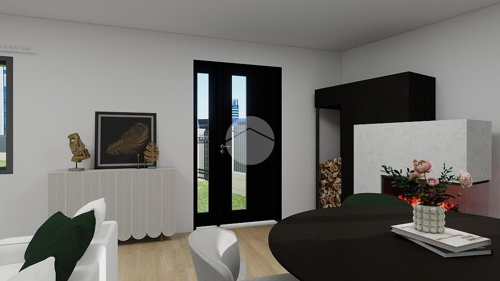 I render presenti nell’annuncio aiutano a immaginare il potenziale della casa dopo la ristrutturazione: un ingresso che si apre su un ampio soggiorno con zona pranzo e camino, una cucina separata e luminosa, e una zona notte accogliente e funzionale al piano superiore.